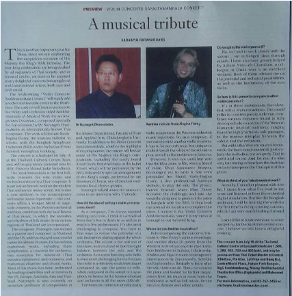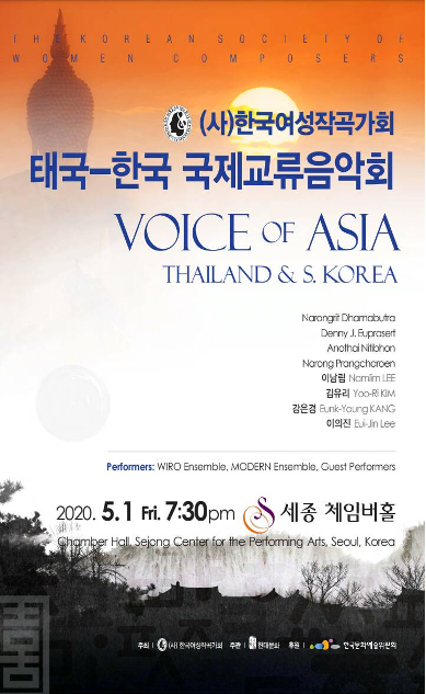 5.15 "เอเชียนยูโฟนี" (Asian Euphony) สำหรับวงออร์เคสตราและเครื่องดนตรีเอเชีย 5 ชิ้น ความยาว 9 นาที เผยแพร่ในโอกาสต่อไปนี้