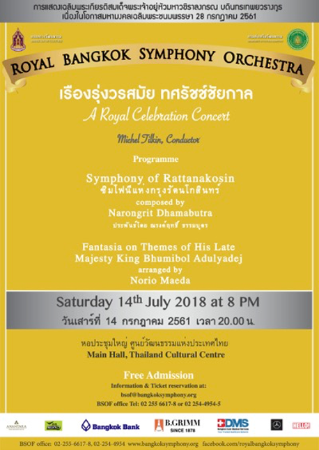 5.13 ซิมโฟนีแห่งกรุงรัตนโกสินทร์ (Symphony of Rattanakosin) เป็นซิมโฟนีขนาดใหญ่ ความยาว 48 นาที นับเป็นซิมโฟนีหมายเลข 7 ประกอบด้วย 4 ท่อน ประพันธ์โดยใช้ทำนองที่เป็นพระราชนิพนธ์ของพระมหากษัตริย์ในราชวงศ์จักรีแห่งกรุงรัตนโกสินทร์ เผยแพร่ในโอกาสต่อไปนี้